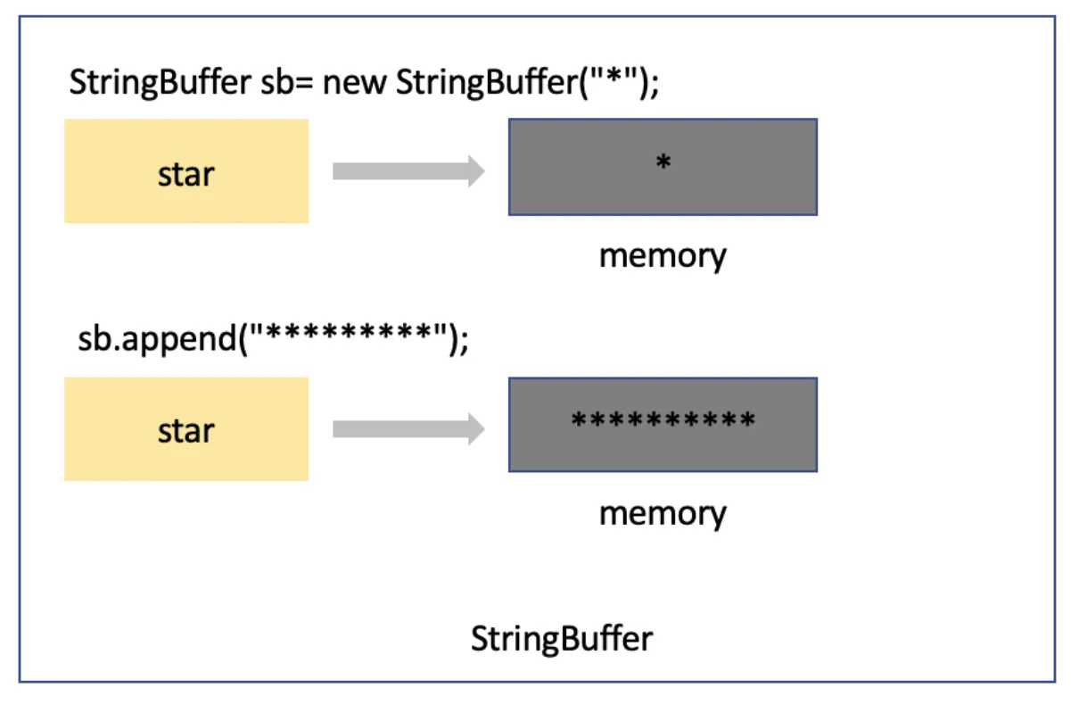 StringBuffer와 StringBuilder는 가변(Mutable) 객체로,