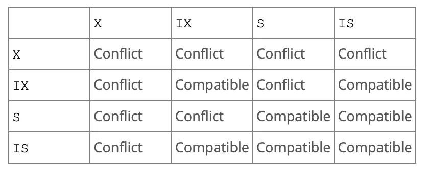 Intention Lock은 말 그대로 잠겨진 혹은 잠글 예정인 Lock으로, row에 Share Lock을 얻으면 해당 table에 IS Lock을 획득한다.