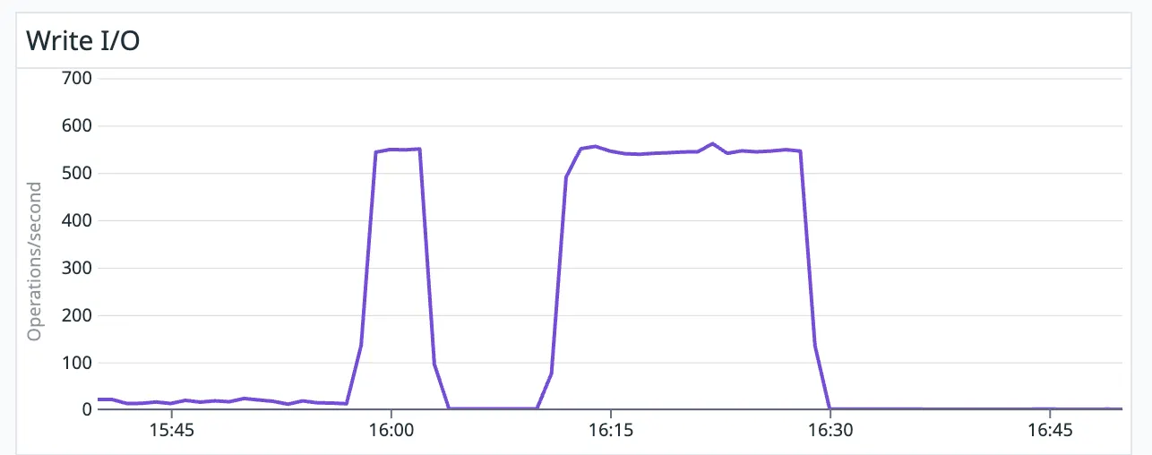 그렇다면 디스크에 빠른 속도로 많은 데이터를 write하는 원인은 무엇일까. 원인을 찾던 중 인프라 팀에서 특정 쿼리가 굉장히 오랫동안 실행되고 있다는 것을 확인했다.