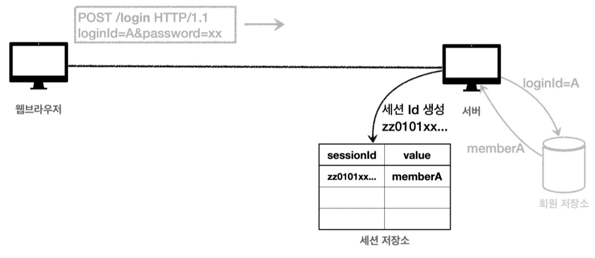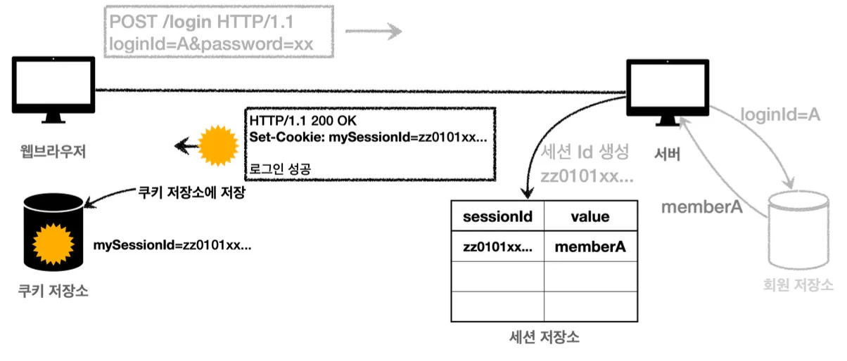 이렇게 생성한 세션 Id를 쿠키에 담아 클라이언트에 응답하고,