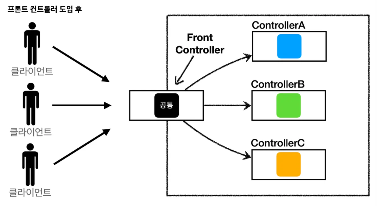 프론트 컨트롤러에서는 이와 같이 요청에 맞는 핸들러를 찾고, 해당 핸들러 어댑터에 해당 핸들러를 호출하여 요청에 맞는 비즈니스 로직을 처리한다. 이를 통해 여러 컨트롤러를 호환할 수 있도록 더 유연하게 사용할 수 있다.