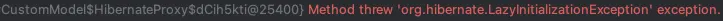 엔티티 내부 필드에 LazyInitializationException이 저장되어 있음을 확인