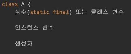 클래스는 상수(static final), 멤버 변수, 생성자, 메서드 순으로 작성하자.
