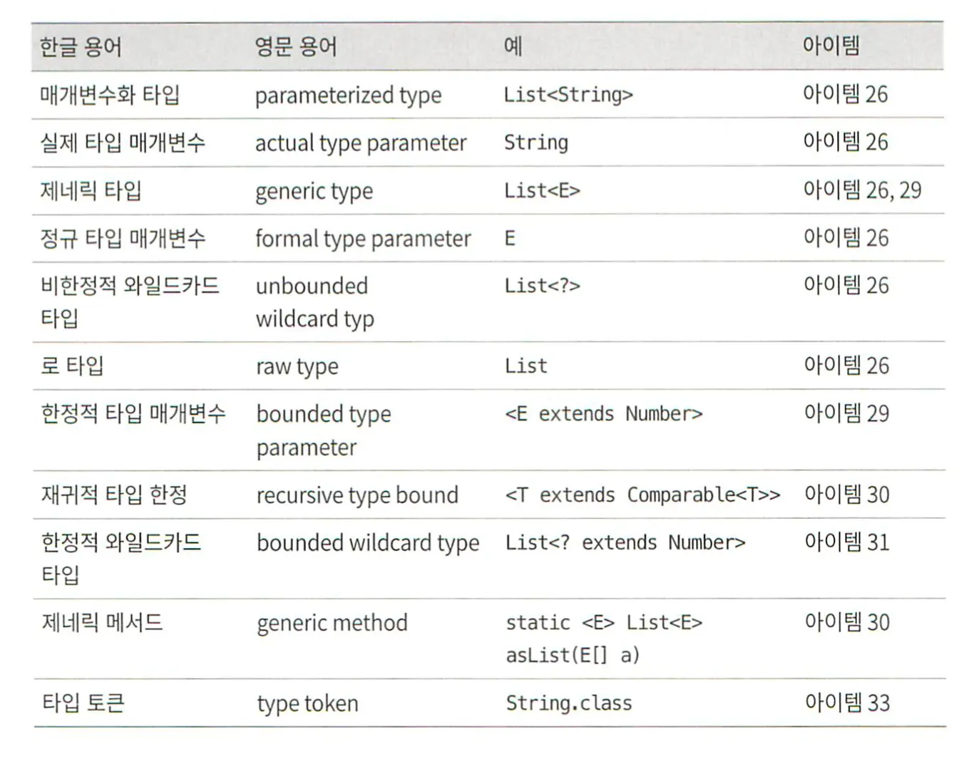 타입 안전성과 디버깅의 용이성, 표현력을 위해 가급적 로 타입 대신 제네릭 타입을 사용하자. 로 타입은 과거 버전의 호환성이 필요한 경우에만 사용하자