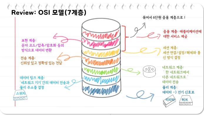 OSI 모델에서 데이터를 상위 계층으로 보내거나 하위 계층으로 보낼 때, 필요한 정보를 헤더에 담아 붙이는 캡슐화와 떼어내는 역캡슐화 과정을 거친다.