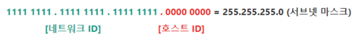 IP 주소를 서브넷팅하면 어디까지가 네트워크 ID이고 어디부터가 호스트 ID인지 판단하기 어려운데, 이를 서브넷 마스크를 사용하여 식별한다.