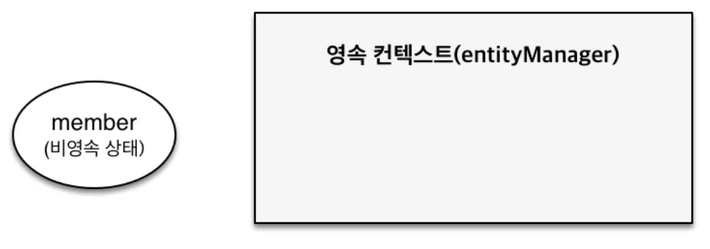 객체를 생성만 한 상태에서 해당 객체는 영속성 컨텍스트에서 관리 되고 있지 않는 비영속 상태이다.