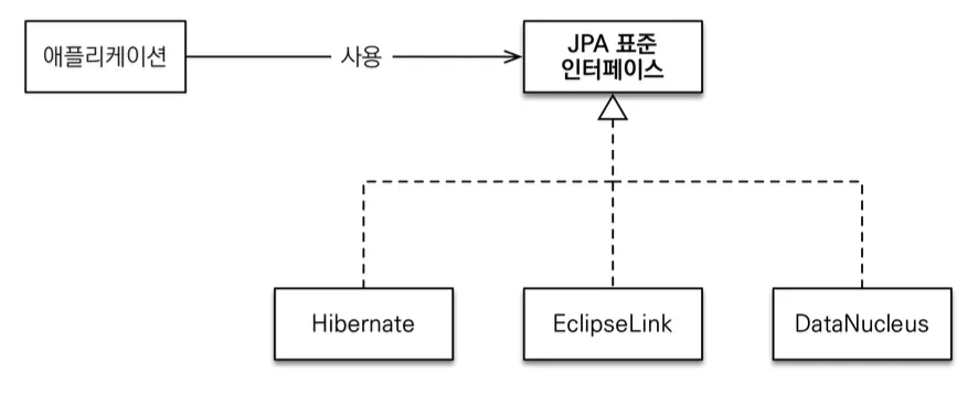 JPA는 표준 인터페이스로 Hibernate, EclipseLink, DataNucleus 등의 구현체를 두고 있다.