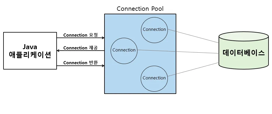 JDBC API를 통해 데이터베이스와 연결하는 작업은 TCP/IP 커넥션 연결 및 아이디, 패스워드를 통한 내부 인증 등 비용이 많이 드는 작업이기 때문에, 여러 Connection 객체를 미리 생성하여 Connection Pool에 보관하다가 애플리케이션에서 필요할 때 꺼내서 사용한다. 최근에는 HikariCP라는 가벼운 용량과 빠른 속도를 가지는 JDBC Connection Pool 프레임워크가 많이 사용된다.