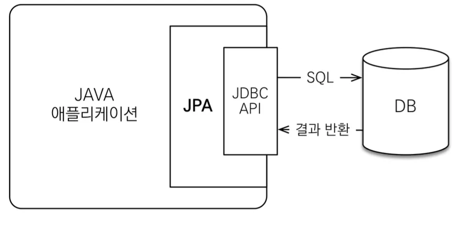 기존에 DB와 통신하기 위해 SQL에 맞춰 JDBC API를 개발자가 직접 호출했었다면, JPA는 애플리케이션과 JDBC 사이에서 동작하여 코드에 맞춰 JDBC API를 대신 호출해주는 역할을 한다.