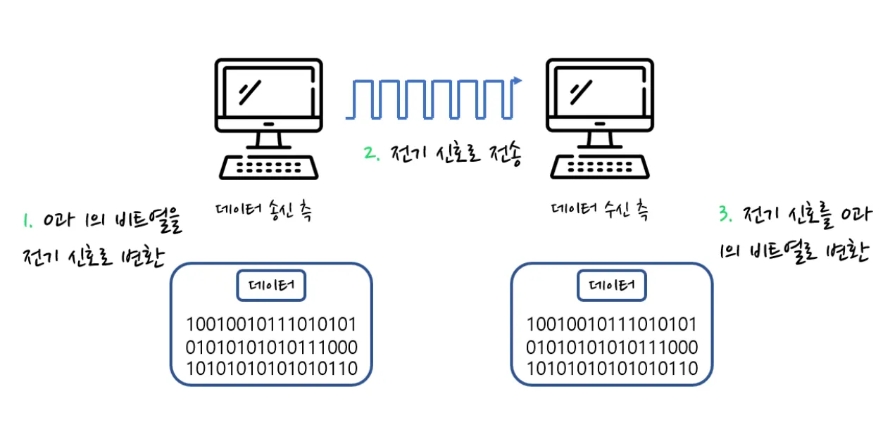 데이터 링크 계층에서 만들어진 프레임(frame)으로 받은 데이터를 디지털 신호인 비트에서 아날로그 신호로 인코딩하여 네트워크 장치로 송신한다.