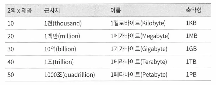 분산 시스템에서는 다루는 데이터 양이 엄청나게 커질 수 있으니, 데이터를 2의 제곱수로 표현하면 어떻게 되는지 알고 있어야한다.