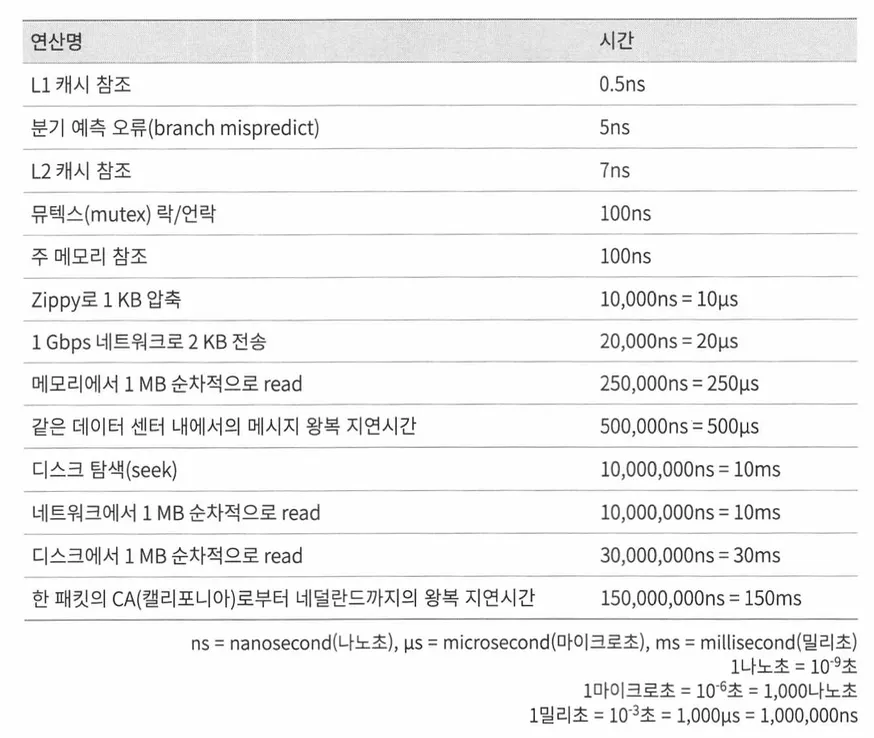 개략적인 규모 추정(back-of-the-envelope estimation)은 보편적인 성능 수치상에서 사고 실험(thought experience)을 수행해 추정치를 계산하는 행위이다. 이를 요구사항에 어떤 설계가 부합할 것인지 알아볼 수 있다.