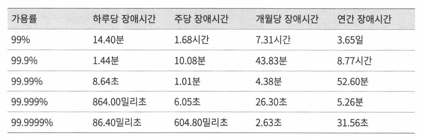 가용성에 관계된 수치들