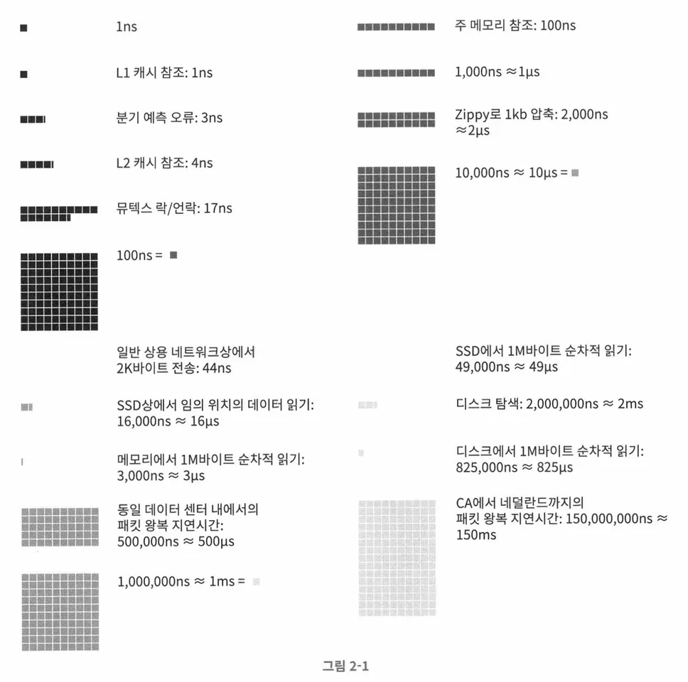 위는 2020년 한 구글 엔지니어가 시각화한 응답지연 값 수치이다.