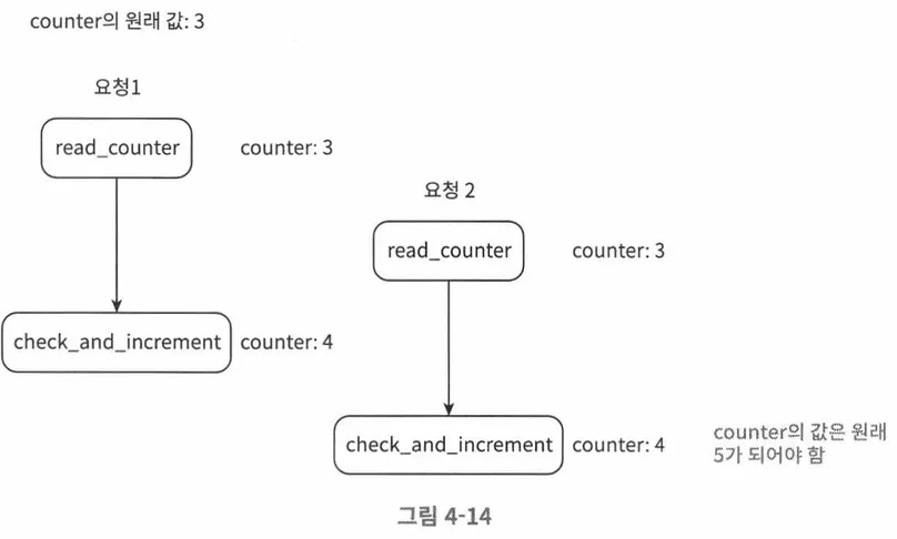 이러한 동작은 병렬 스레드 환경에서 다음처럼 경쟁 조건 이슈가 발생할 수 있다.
