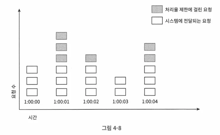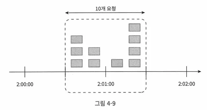 윈도우 경계 부근에서 일시적으로 트래픽이 몰리면, 기대했던 시스템 처리 한도보다 많은 양의 요청을 처리하게 된다.