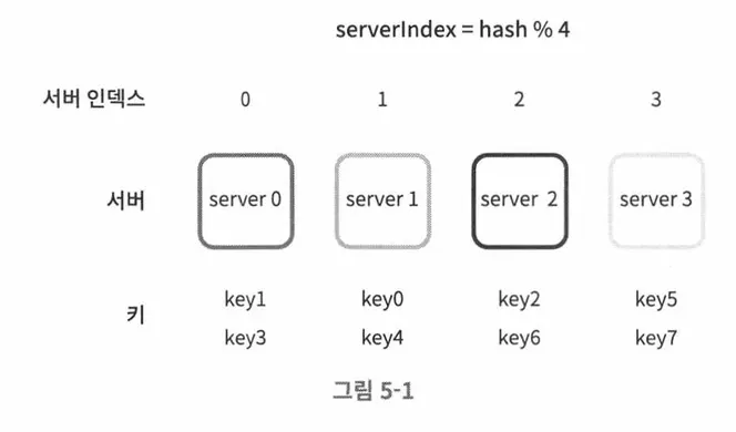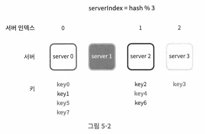 이와 같이 데이터를 분산하여 저장할 때, 서버 풀(pool)의 크기가 고정되어 있다면 잘 동작하지만 서버가 추가되거나 기존 서버를 삭제하는 경우 문제가 발생한다.