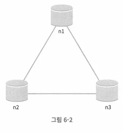 분산 시스템에서는 데이터를 여러 노드에 복제해 보관하는데, 3대의 복제 노드 n1, n2, n3에 데이터를 보관하는 상황은 다음과 같을 것이다.
