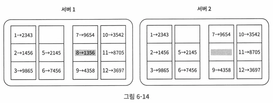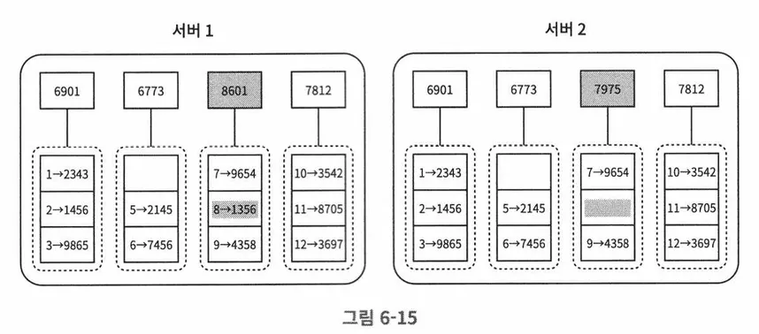 만약 가상노드를 사용한다면, N개의 서버를 선택할 때 실제 물리 서버의 개수가 N보다 작아지는 경우가 생길 수 있다. 이 문제를 피하려면 노드를 선택할 때 물리 서버를 중복 선택하지 않도록 해야한다.