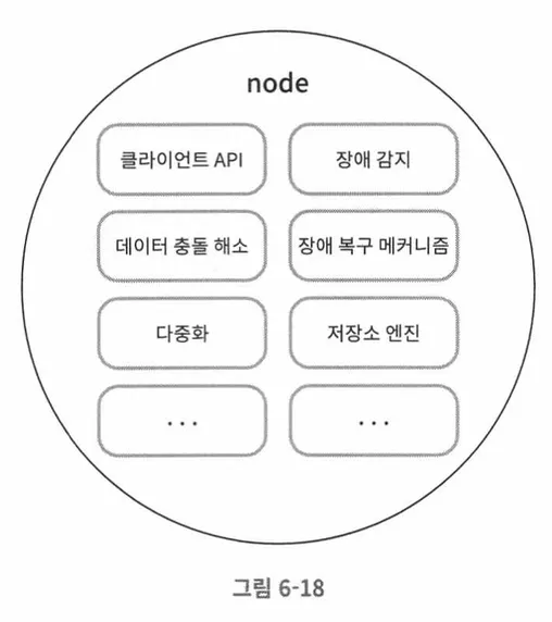 완전히 분산된 설계이므로, 모든 노드는 위 그림의 기능을 전부를 지원해야한다.
