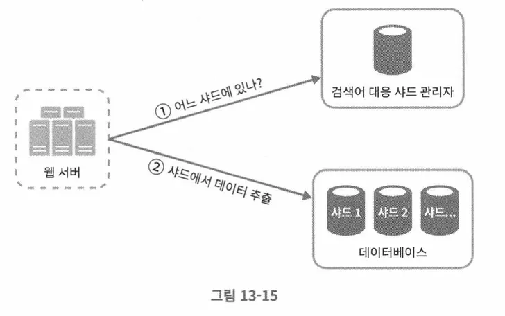 검색어 대응 샤드 관리자는 어떤 검색어가 어느 저장소 서버에 저장되는지를 관리하고, 그를 통해 샤드에 접근하는 방식이다. 이를 통해 각 샤드에 데이터를 균등하게 저장하도록 구성할 수 있다.