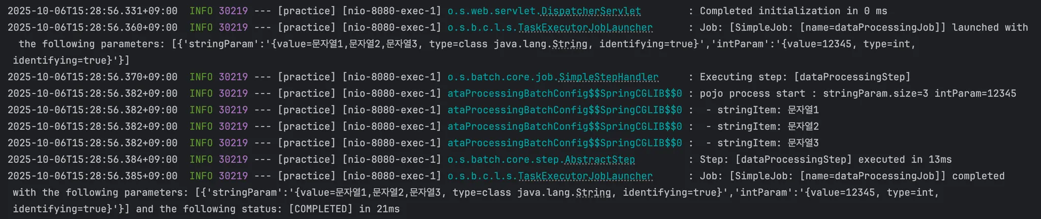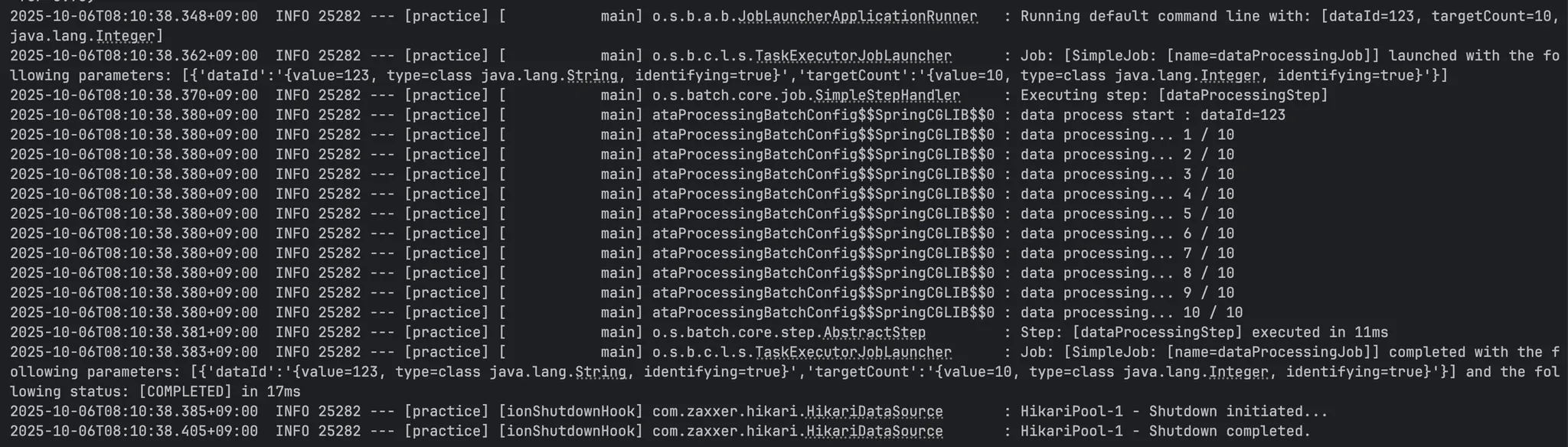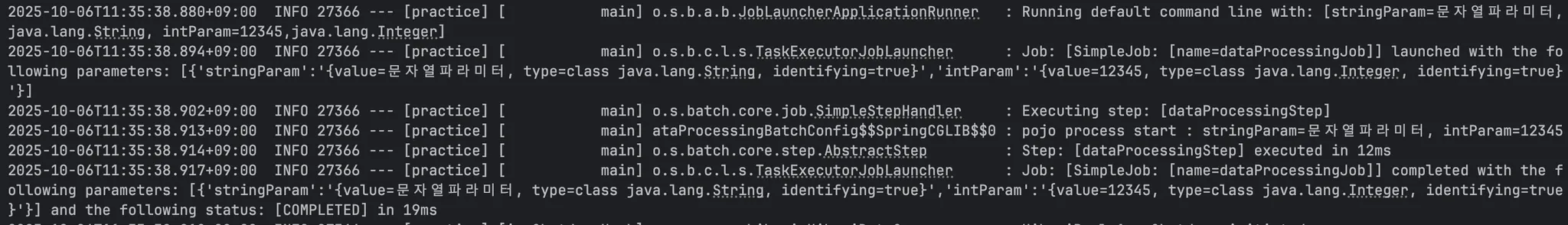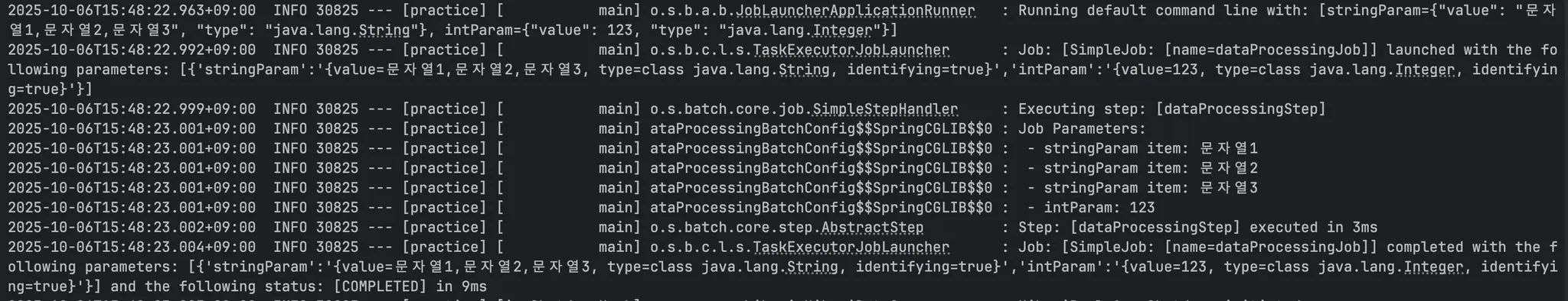 대신 이처럼 JobParameters로 넘겨 외부에서 데이터를 받을 수 있게 만들면, 배치의 유연성을 제대로 활용할 수 있다.