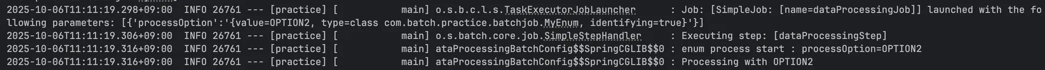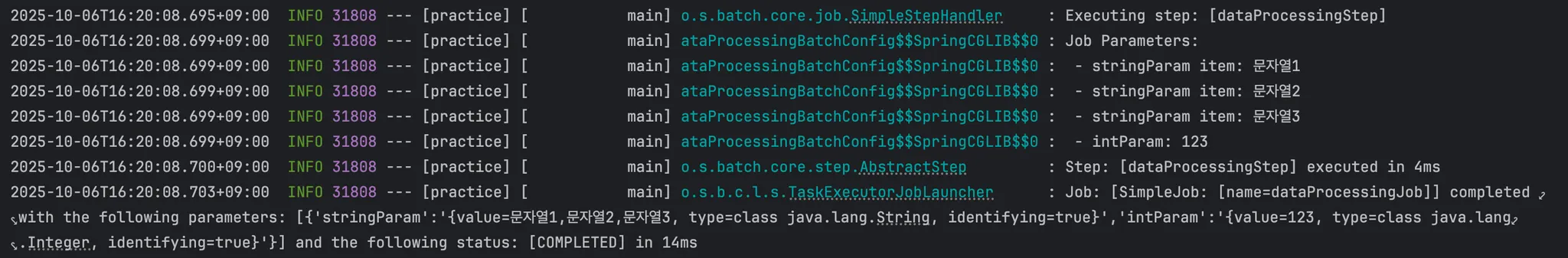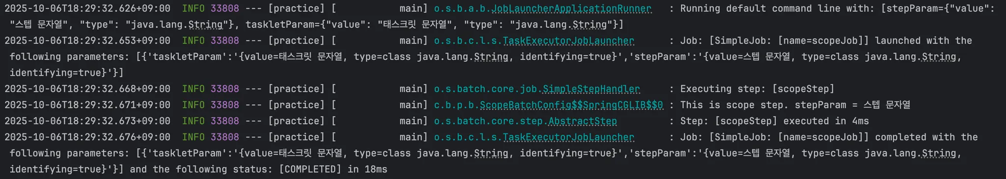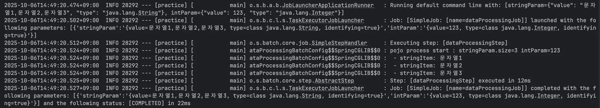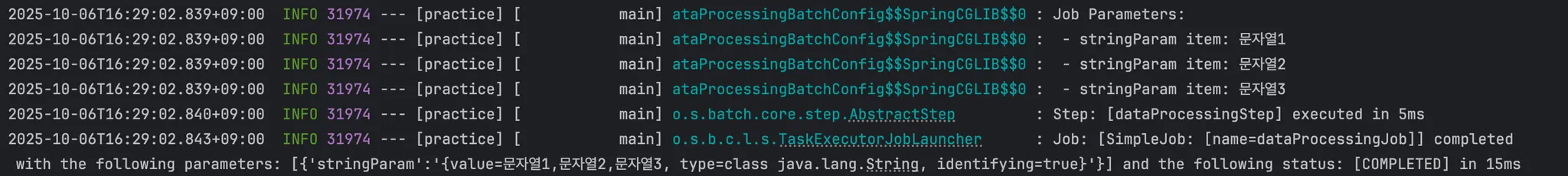 대신 이처럼 JobParameters로 넘겨 외부에서 데이터를 받을 수 있게 만들면, 배치의 유연성을 제대로 활용할 수 있다.