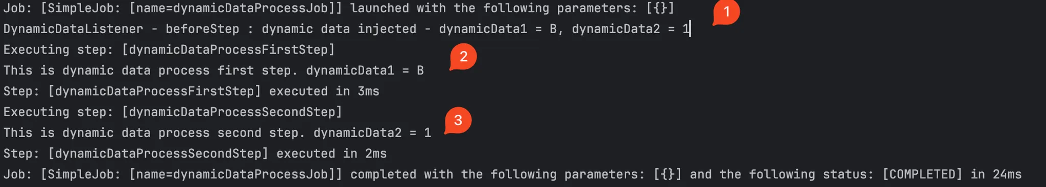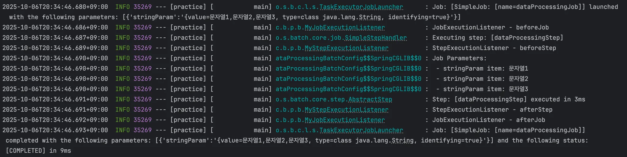 JobParameters만으로 전달할 수 없는 동적인 데이터가 필요한 경우가 있다. 이럴 때 JobExecutionListener의 beforeJob 메서드를 활용하면 동적 데이터를 각 Step에 전달할 수 있다.