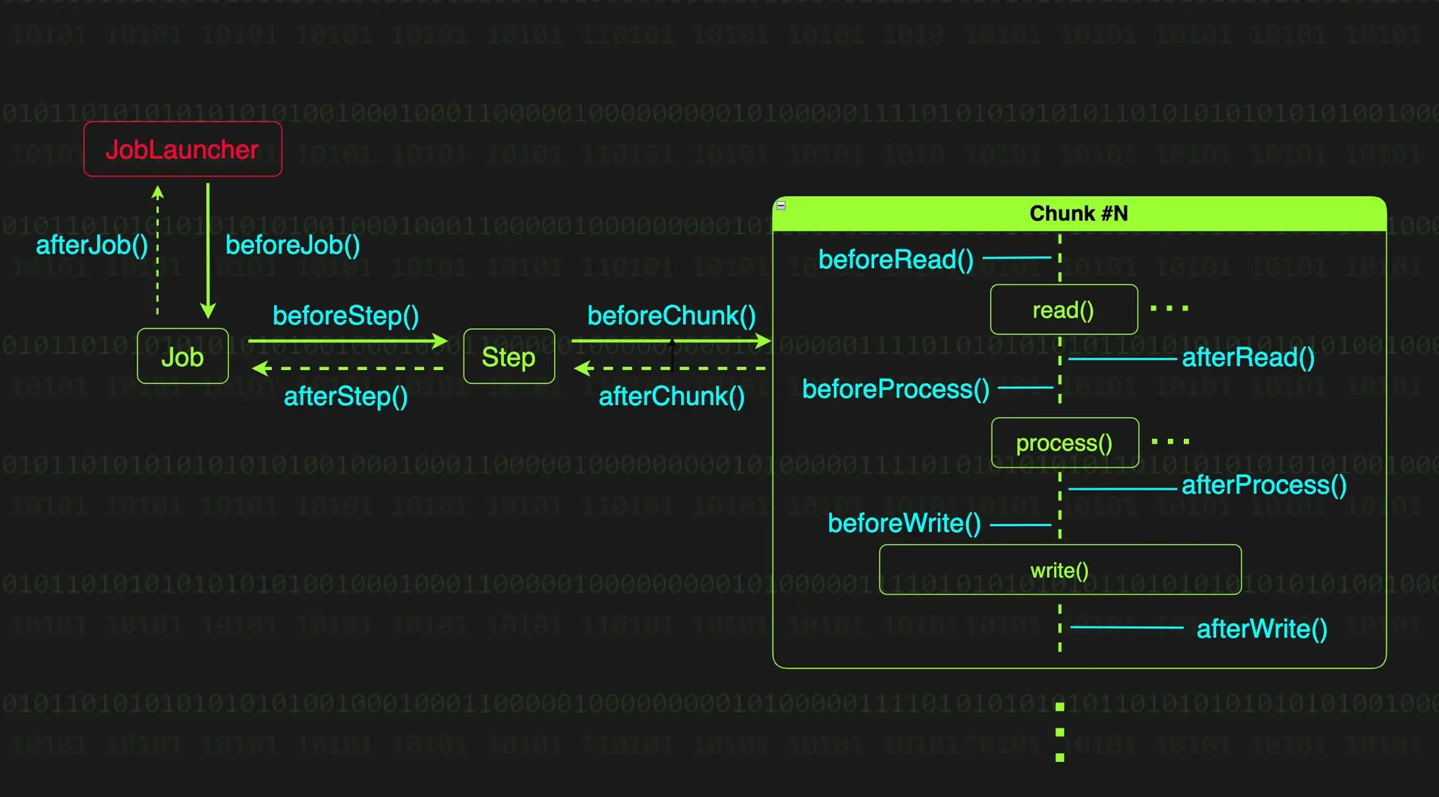 단일 책임 원칙 준수 : 리스너는 감시와 통제만 담당하며, 실제 비즈니스 로직은 Tasklet 구현체이나 ItemProcess 구현체로 분리하자. 리스너가 너무 많은 일을 처리하면, 유지보수가 어려워지고 시스템 동작을 파악하기 힘들어진다.