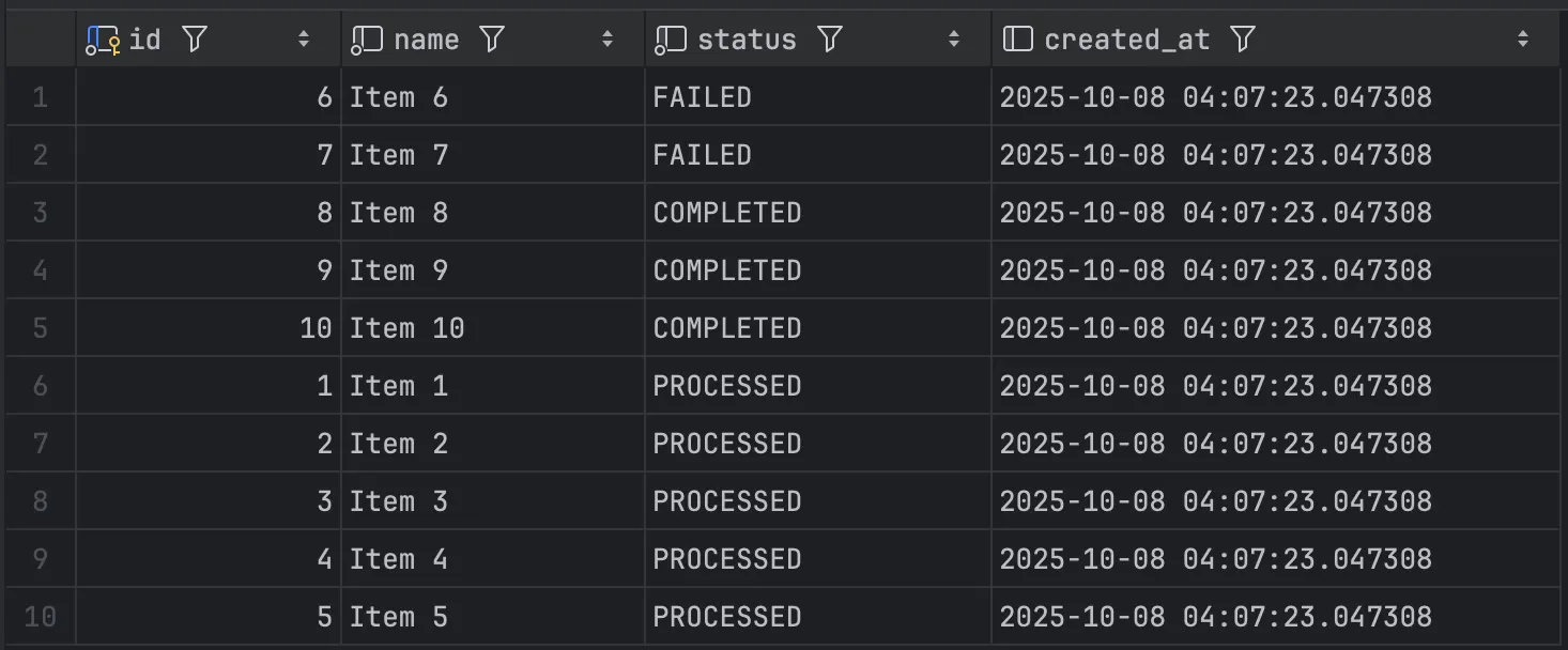 실제로 실행을 시켜보면, 데이터가 5개가 있지만 페이지 0에서 3개를 처리하고 그대로 배치가 종료된다. 뒤의 2개 데이터는 상태가 변경되어 누락돼 처리가 되지 않는 것이다.