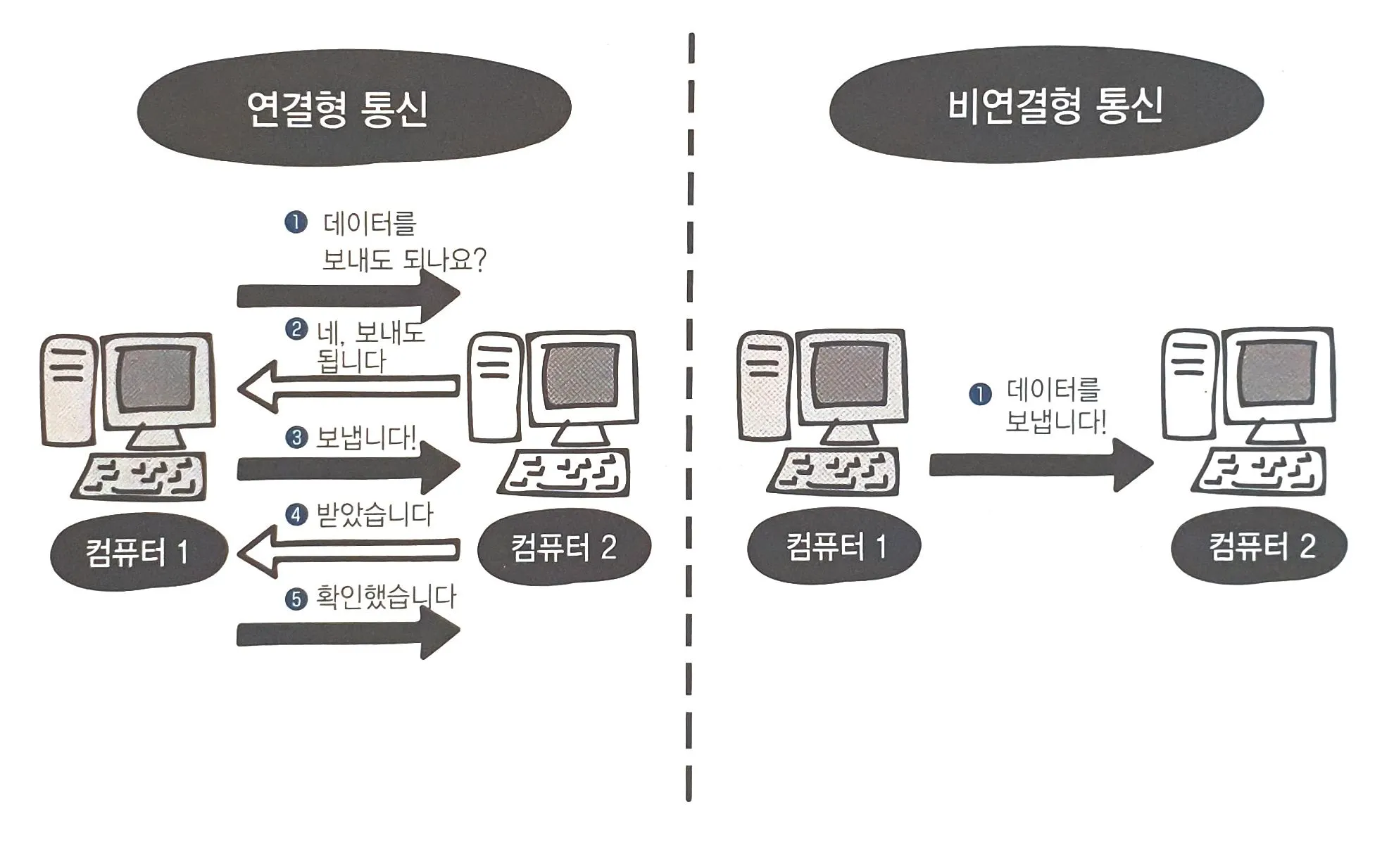연결형 통신은 데이터를 목적지에 신뢰할 수 있고 정확하게 데이터를 전달하는 방법으로, 통신 대상과 서로 확인해가며 통신하는 방식이다. TCP가 연결형 통신이다.