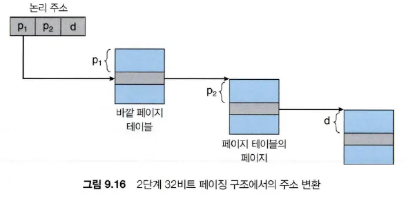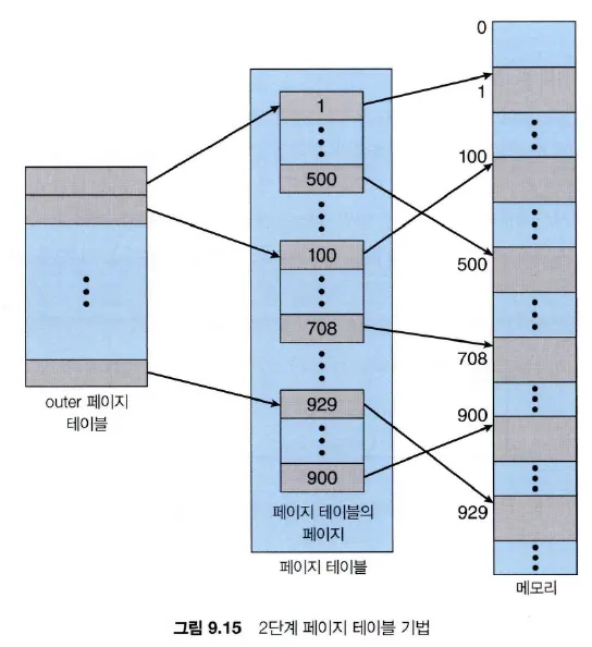 최신의 컴퓨터는 매우 큰 주소 공간을 가지기 때문에 페이지 테이블도 상당히 커야한다. 예를 들면, 32비트 시스템에서는 페이지의 크기가 4KB라면 페이지 테이블은 100만개 이상의 항목으로 구성되고 페이지 테이블만으로도 4MB의 공간을 차지하게 된다. 이렇게 페이지 테이블이 매우 큰 경우 페이지 테이블을 여러 개의 작은 조각으로 나누어 저장한다.