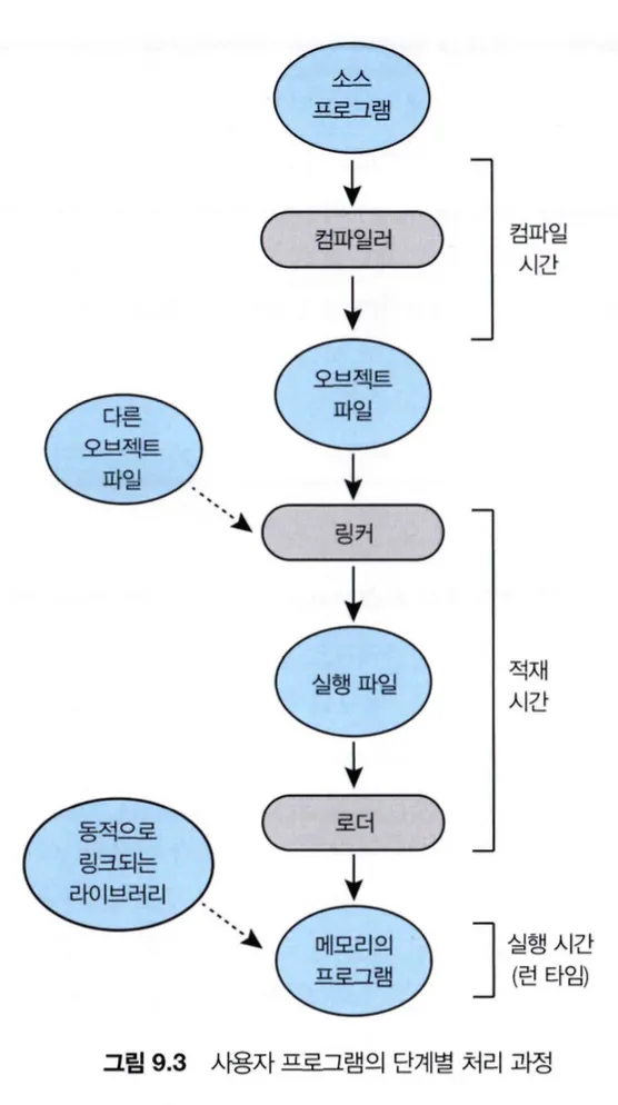 메모리 주소 공간에서 명령어와 데이터의 바인딩은 바인딩이 이루어지는 시점에 따라 3가지로 구분된다.