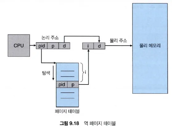 페이지 테이블 항목이 매우 많아지는 것과 그로 인해 물리 메모리 사용을 추적하기 위해 많은 비용이 든다는 점을 개선하는 또 다른 방법은 역 페이지 테이블(inverted page table)이다.