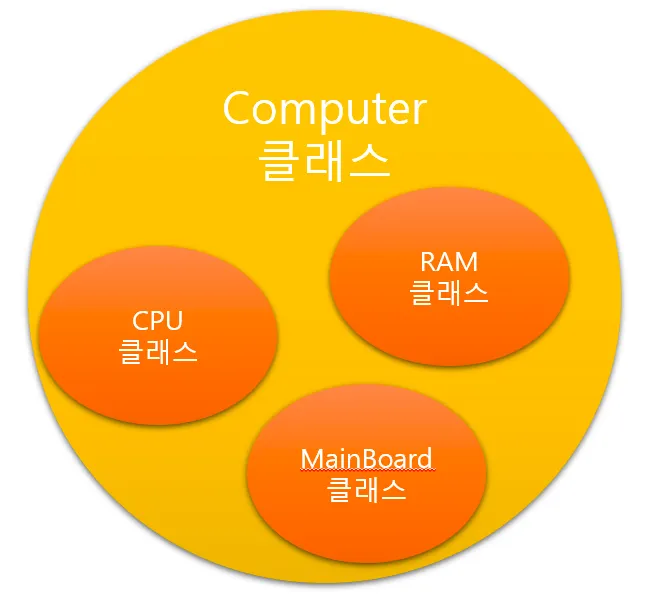 다른 클래스를 포함하거나 다른 클래스의 메서드나 변수를 받아들여서 사용한다.