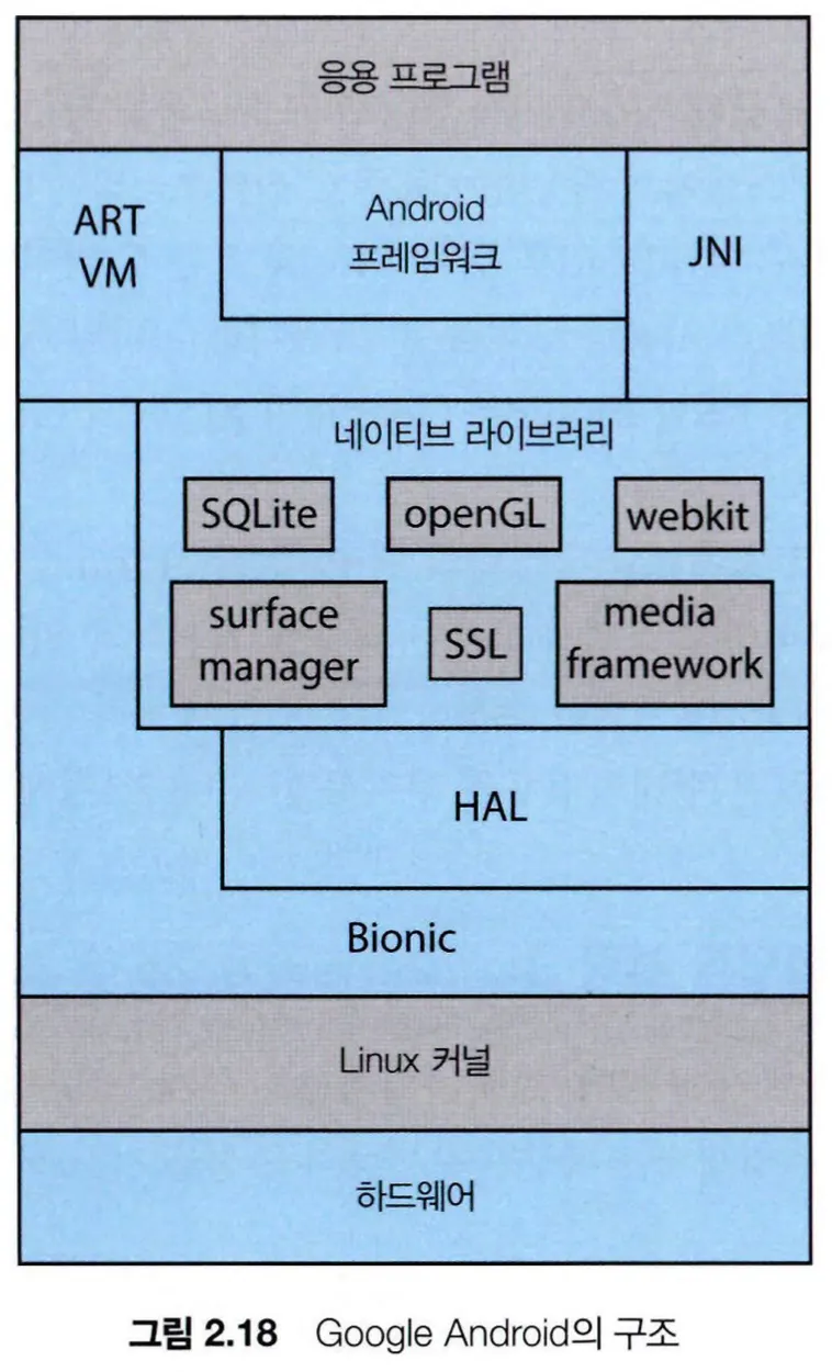 Android는 그래픽과 오디오, 하드웨어 기능을 지원하는 프레임워크를 제공하며 계층화된 소프트웨어 구조를 가진다는 점에서 iOS와 유사하다.