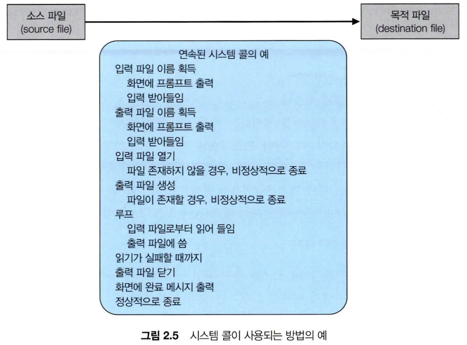 위와 같이 간단한 프로그램이라도 시스템 콜을 많이 사용하지만, 프로그램을 만들 때 이런 많은 시스템 콜을 전부 알 필요가 없다. 그 이유는 응용 프로그래밍 인터페이스(API, Application programming Interface)에 따라 프로그램을 설계하기 때문이다.