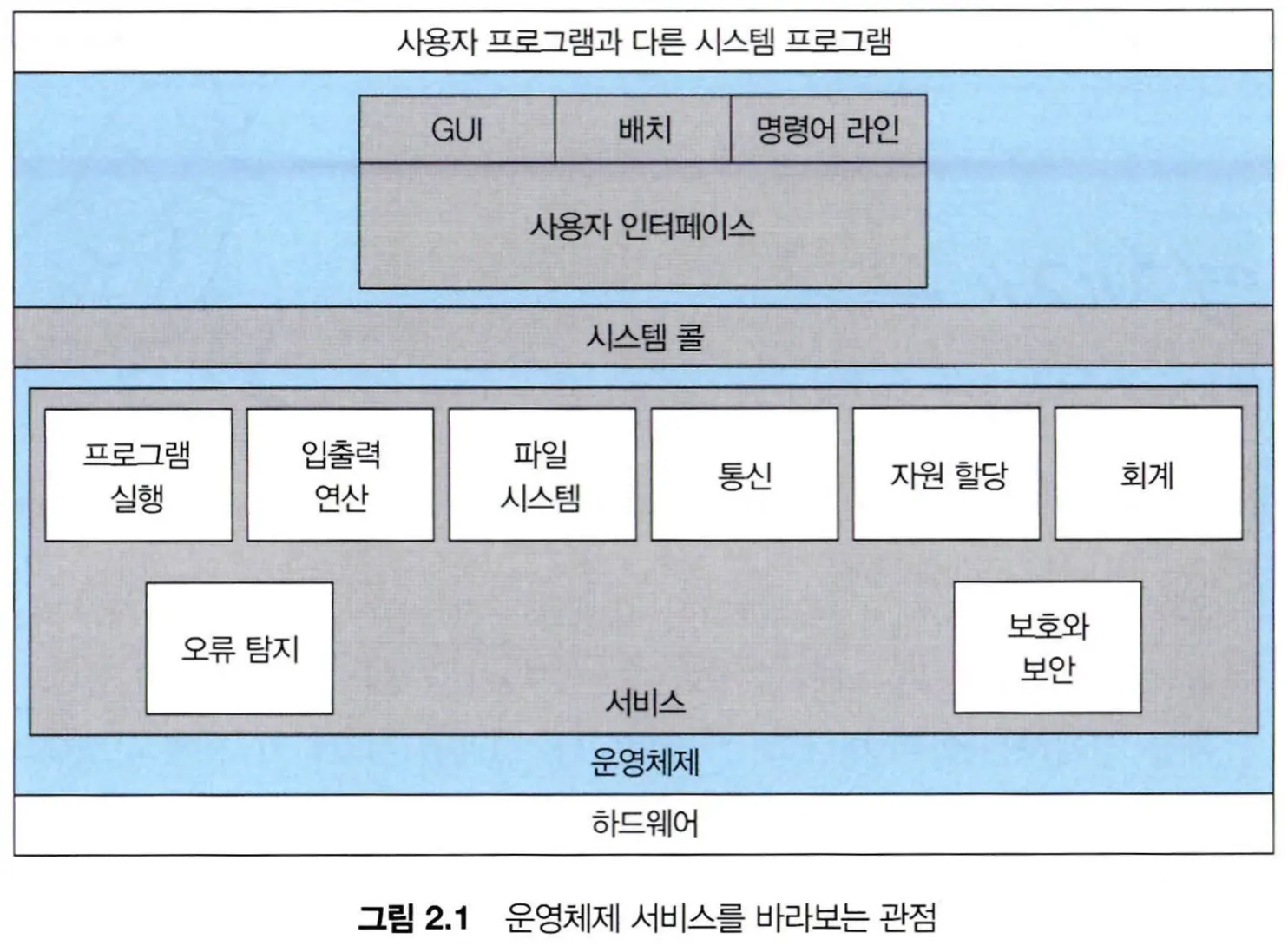 계층적 접근 방식은 느슨하게 결합된 시스템 중 하나로 운영체제를 여러 개의 층으로 나누는 방식이다.
