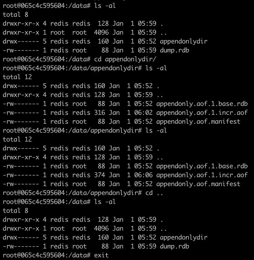 새로운 동작이 수행될 때마다 aof 파일이 수정되는 것도 확인했다.