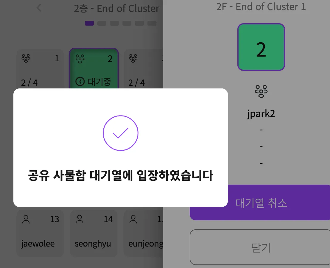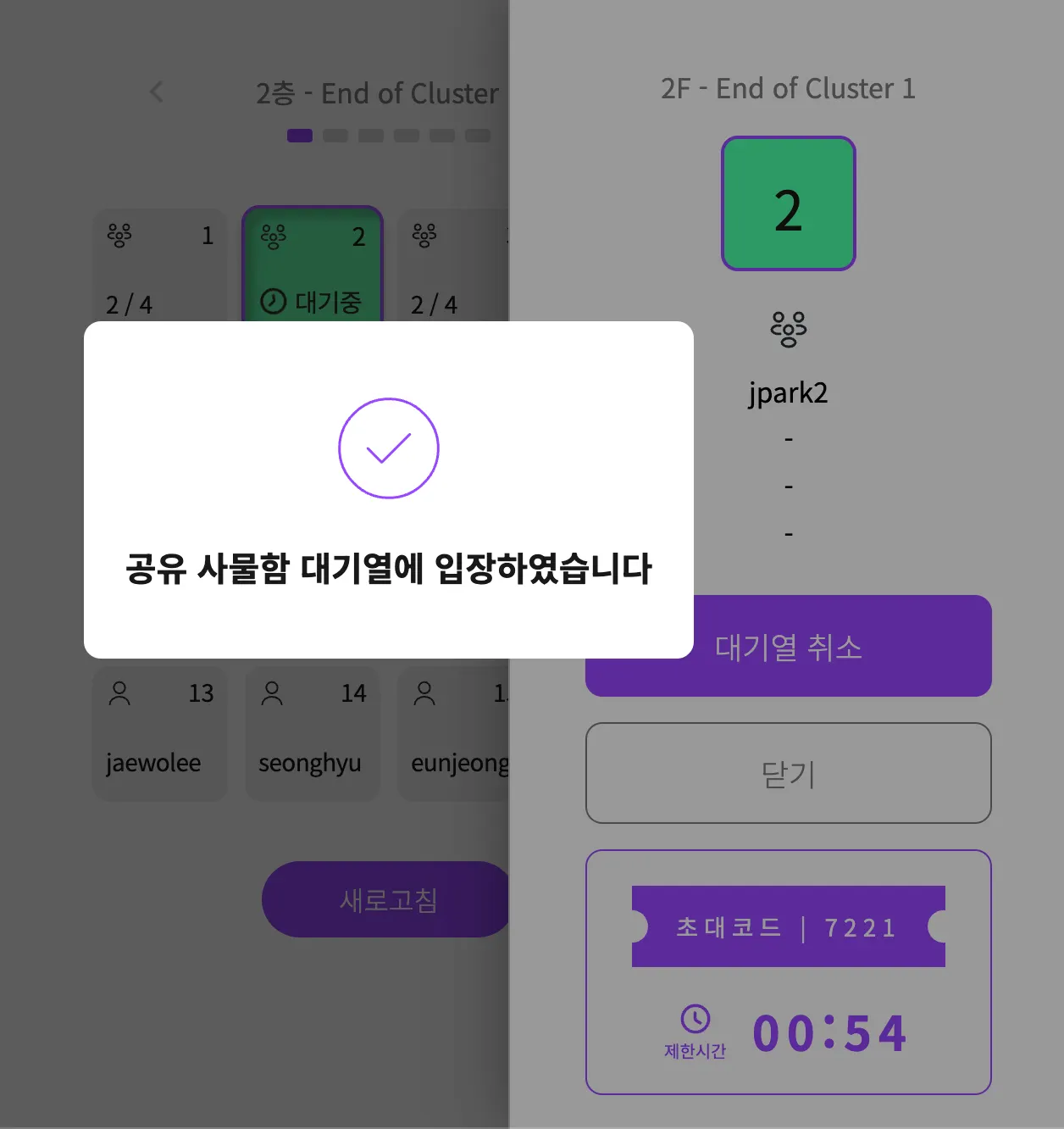 컨테이너를 내렸다가 올려도 위처럼 데이터는 잘 보존이 되었다. 하지만 공유 사물함 세션이 시간이 지나 만료되어도 82:shadow만 지워지고 애플리케이션에서 설정해둔 만료 시 이벤트 처리가 전혀 되지 않았다. 때문에 해당 사물함에 451번 유저(jpark2)가 남아있는 것처럼 보이는 현상이 발생했다.