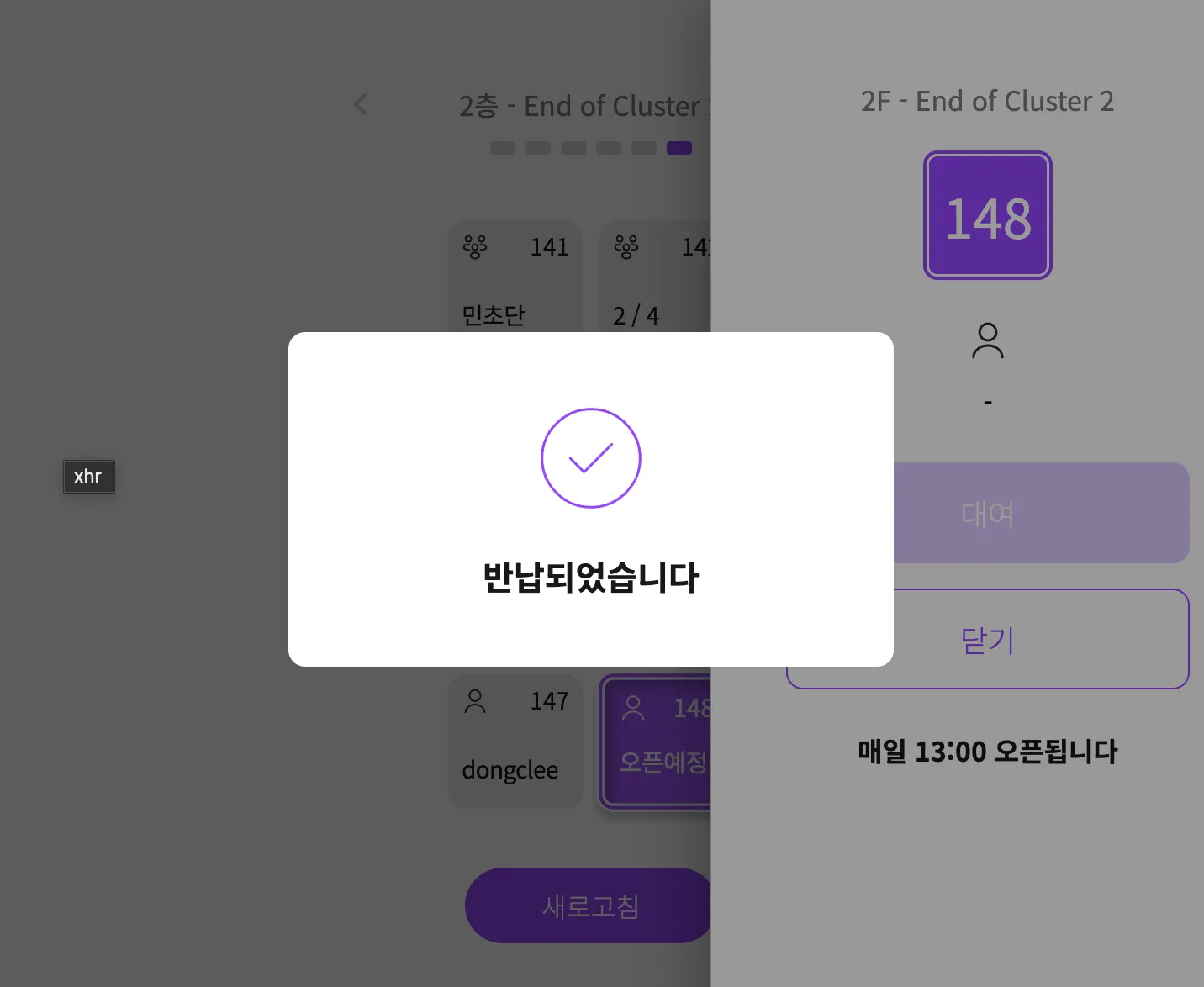 그러니 이처럼 대여 중인 사람으로 보이지만, 실제 대여 중이 아니라 반납이 되지 않는 문제가 발생했다.