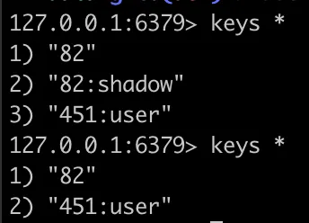 먼저 aof 파일의 PEXPIREAT과 만료 시간 이후 shadow key가 삭제되는 것을 보면, expire 설정 자체는 잘 저장되고 컨테이너를 내렸다가 올려도 복구가 되는 것 같다.