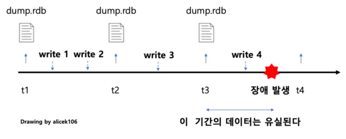 RDB 방식의 문제는 서버 장애 발생 시, 백업 이후 서버 장애가 발생한 시점까지의 데이터가 유실된다는 것이다.