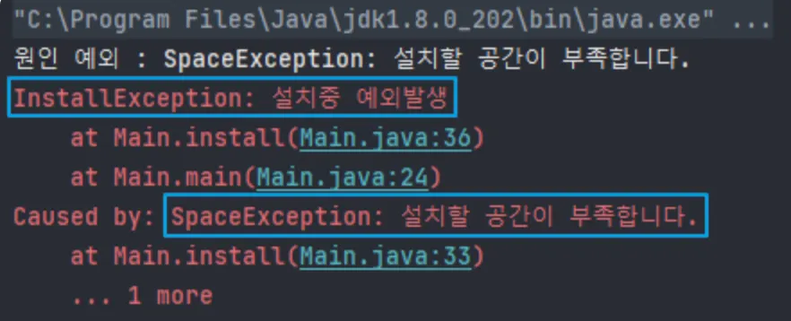 ie.initCause(e); // InstallException의 원인 예외를 SpaceException으로 지정