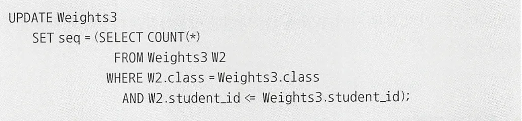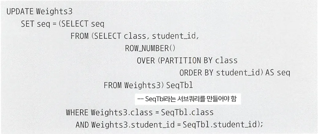 이런 seq 필드를 가지는 테이블에서, 필드에 순번을 갱신하는 UPDATE 구문을 만들고자 한다.
