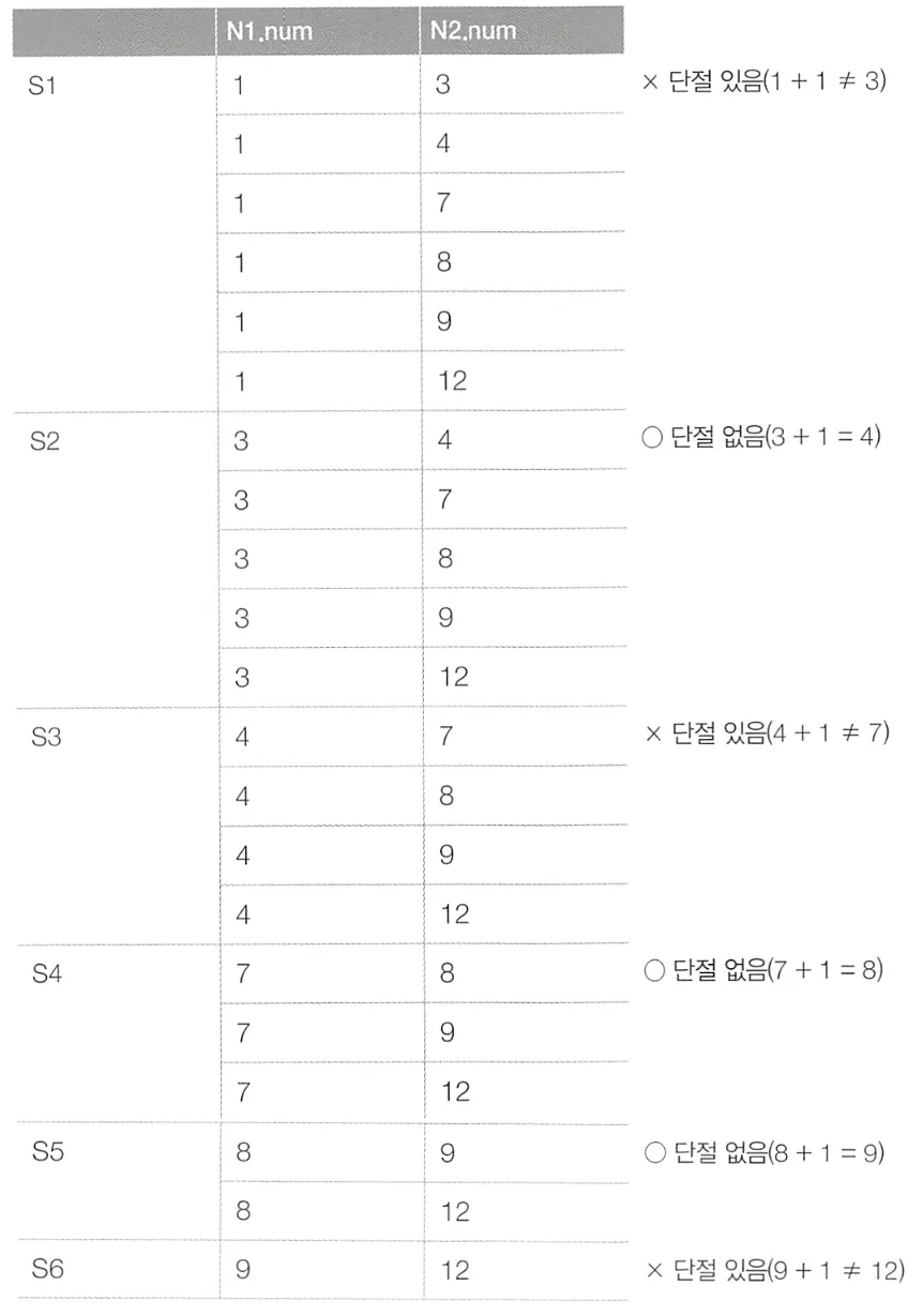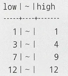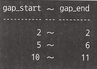 위와 같은 테이블에서 아래처럼 비어있는 구간들을 출력하고자 한다.