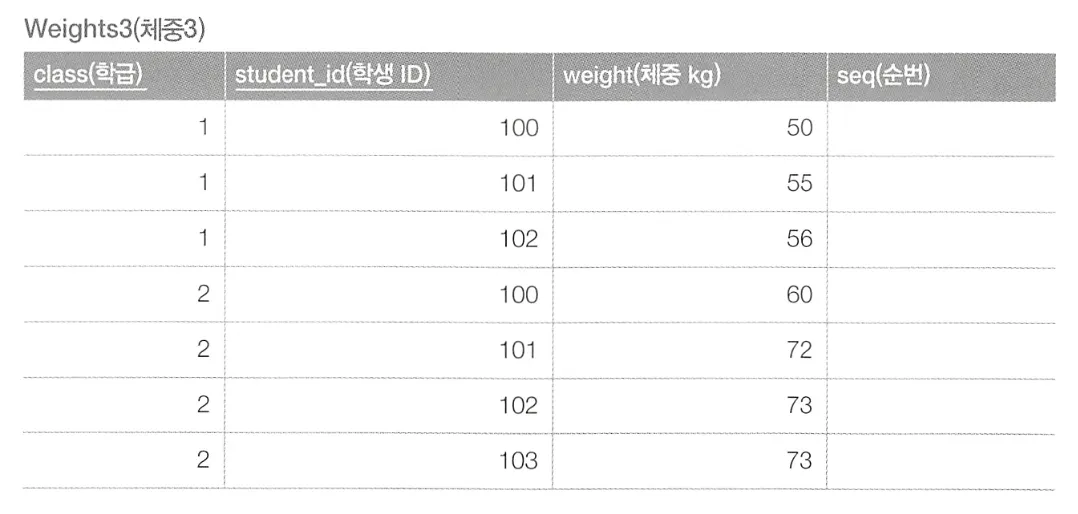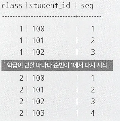 class와 student_id 두 개의 필드를 기본 키로하는 위의 테이블에서 순서를 매기는 방법은 아래와 같다.