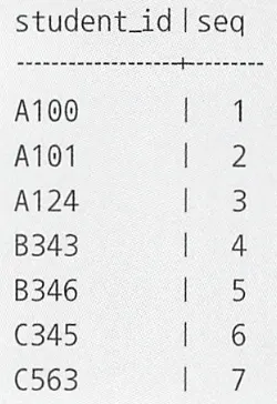 SELECT student_id, ROW_NUMBER() OVER (ORDER BY student_id) AS seq