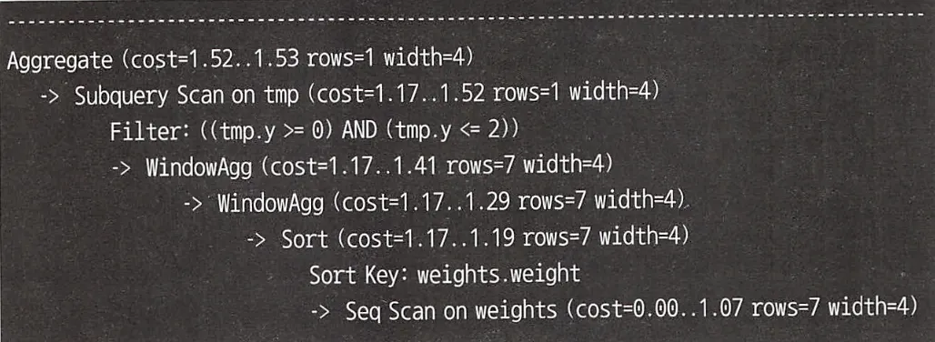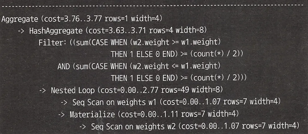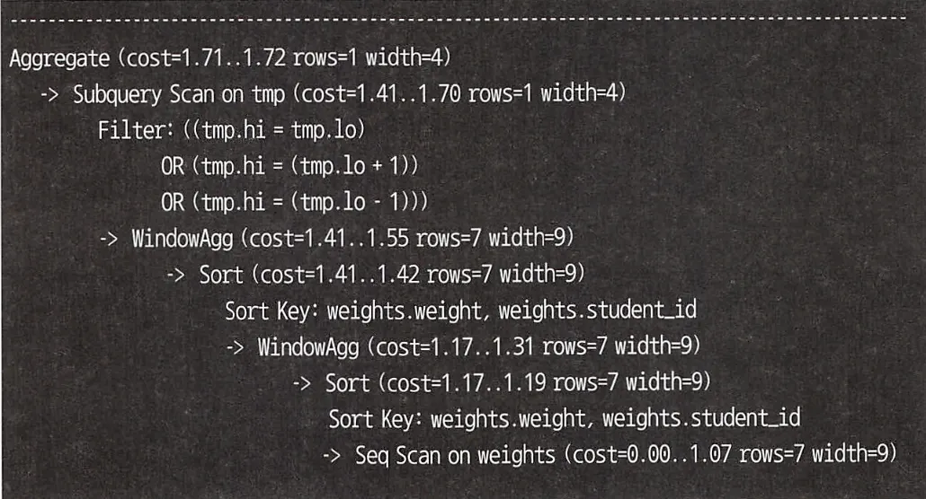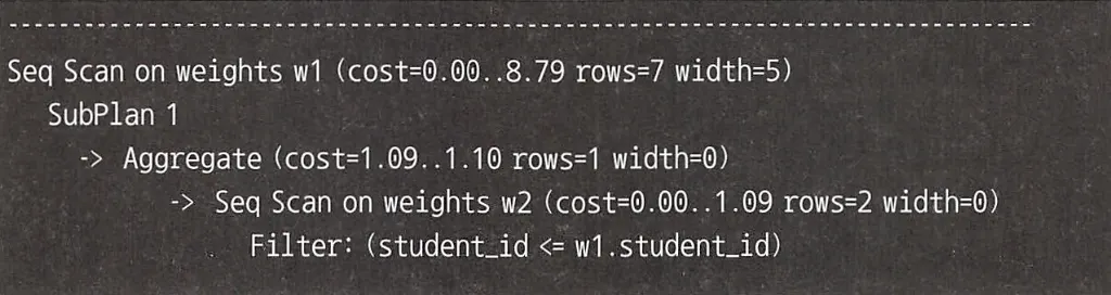 이전에 언급했듯이 자기 결합 때문에 Weights 테이블에 두 번 접근하는 것은 물론 불안정한 실행 계획 리스크를 가지고 있다.